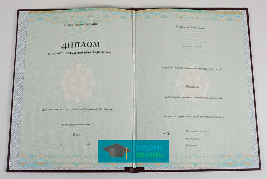Наша компания предлагает купить диплом о переподготовке, напечатанный с соблюдением защитных знаков по требованиям Министерства образования.